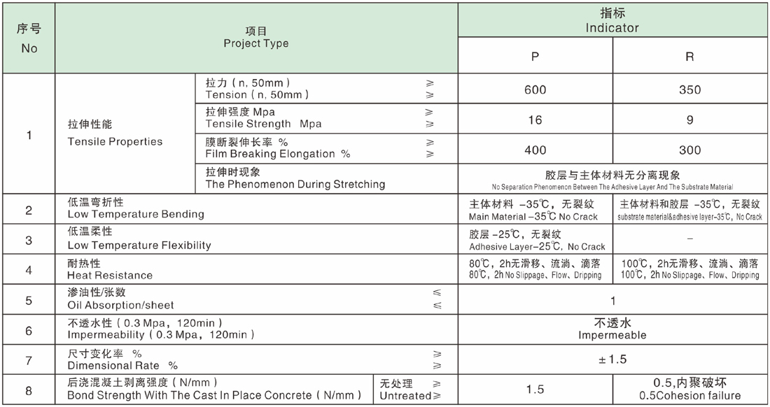 Execution Indicator《 Pre-laid waterproofing membrane》(GB/T23457-2017)P/R